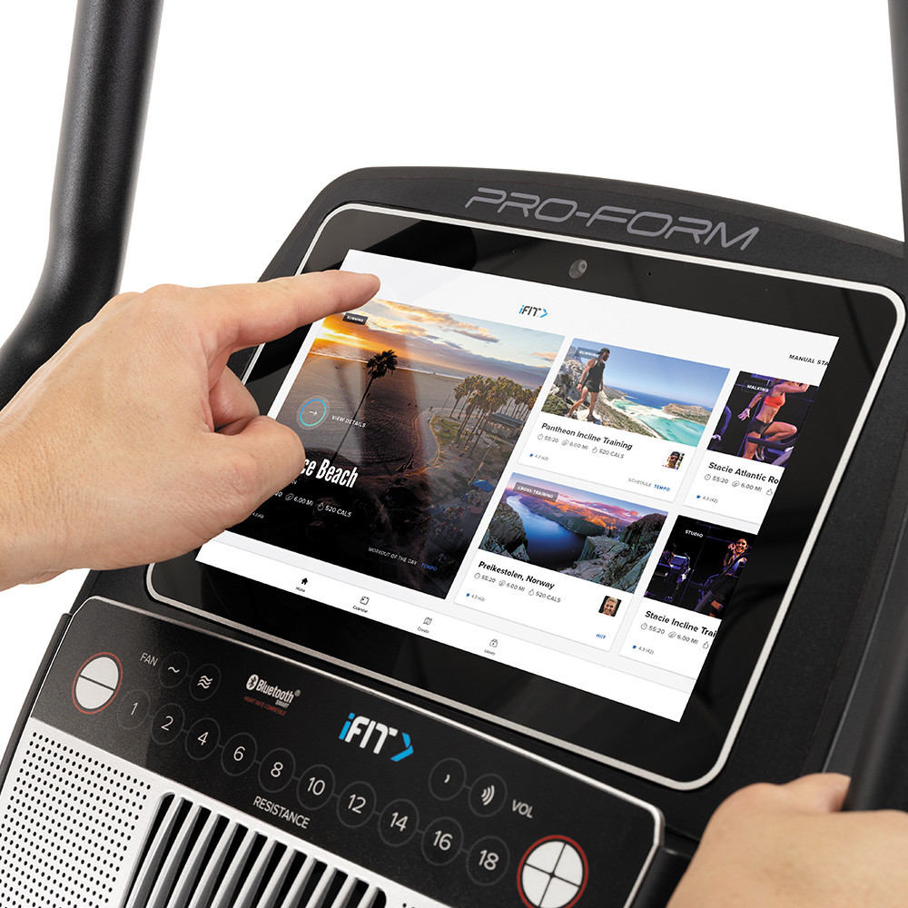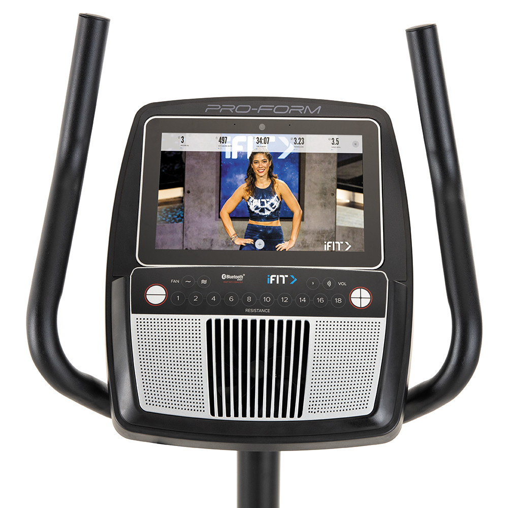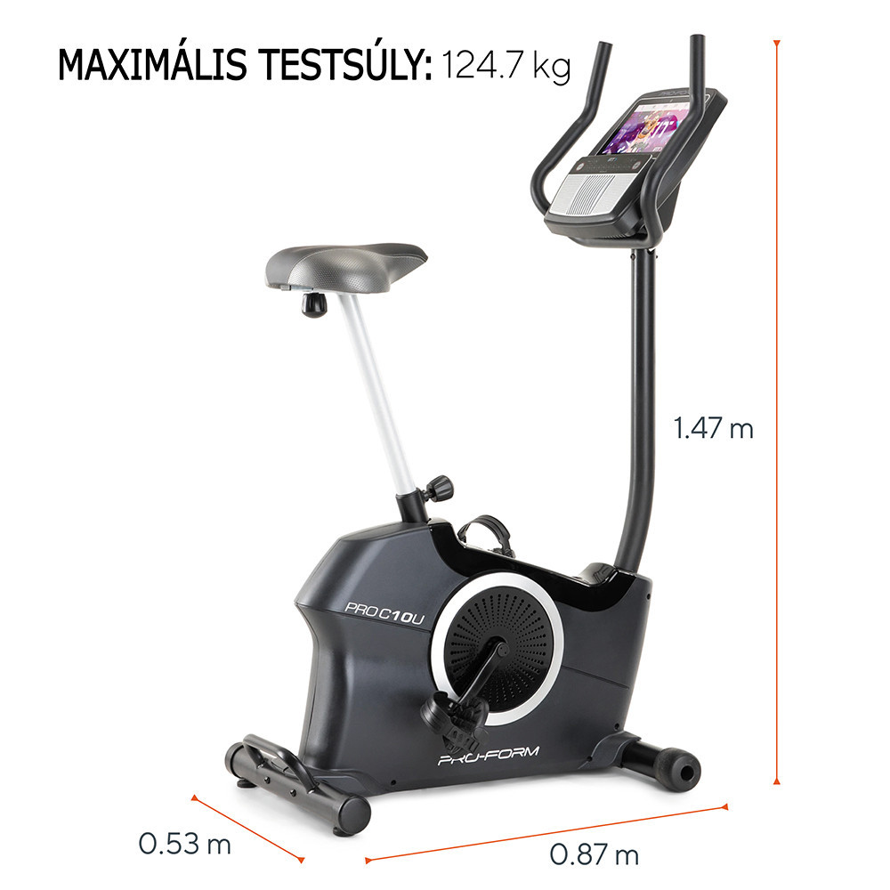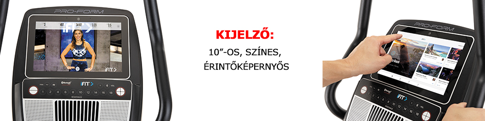 A ProForm Pro C10U szobakerékpár - PFEX52921-INT nagy méretű, 10"-os, színes, érintőképernyős kijelzőjével könnyen tudja edzését követni. kapcsolódhat az iFit programhoz, így akár a világ bármely pontján is kerékpározhat.