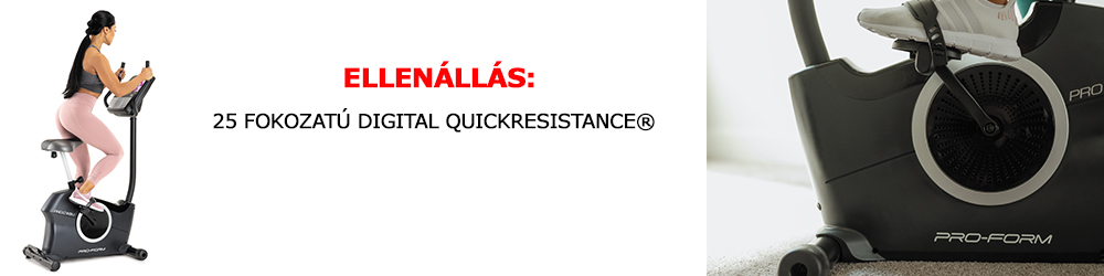 A ProForm Pro C10U szobakerékpár - PFEX52921-INT 25 fokozatú Digital QuickResistance® fejlesztése lehetővé teszi, hogy akár keményebb hegymeneti fokozatba kapcsolva edzhessen, így erősítve a comb, fenék mellett a tüdő kapacitást is.